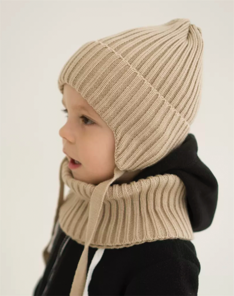 Neo комплект: шапка с завязками, подклад хлопок+ снуд (одинарная вязка)